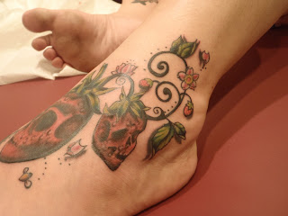 FINALLY finished my roommate's sweet skullberries. I want to expand on this design, but I'm not sure if she wants to go bigger yet. She's a trooper for letting me do this on her!